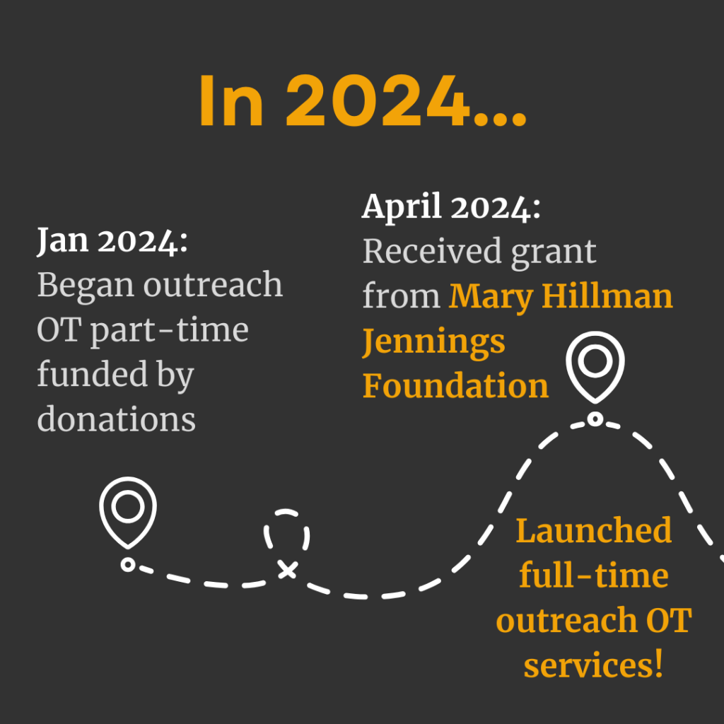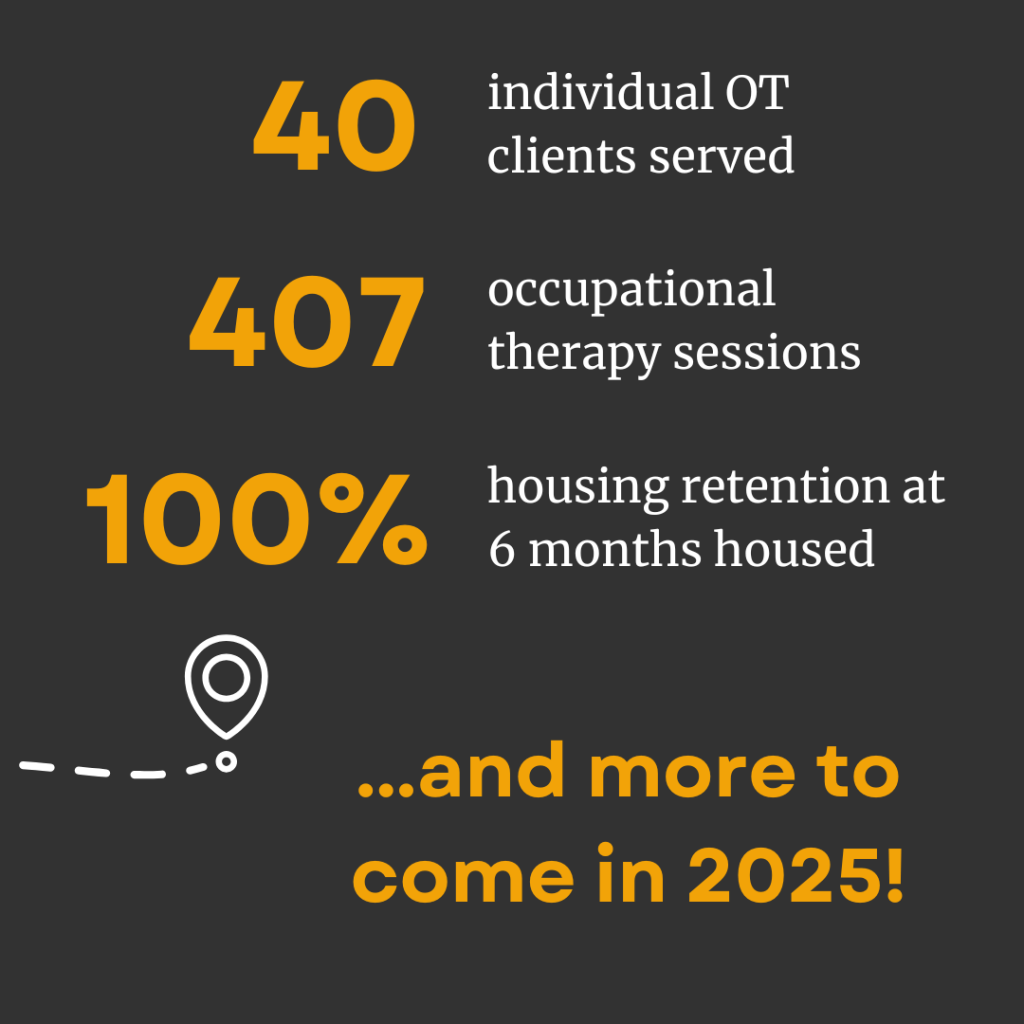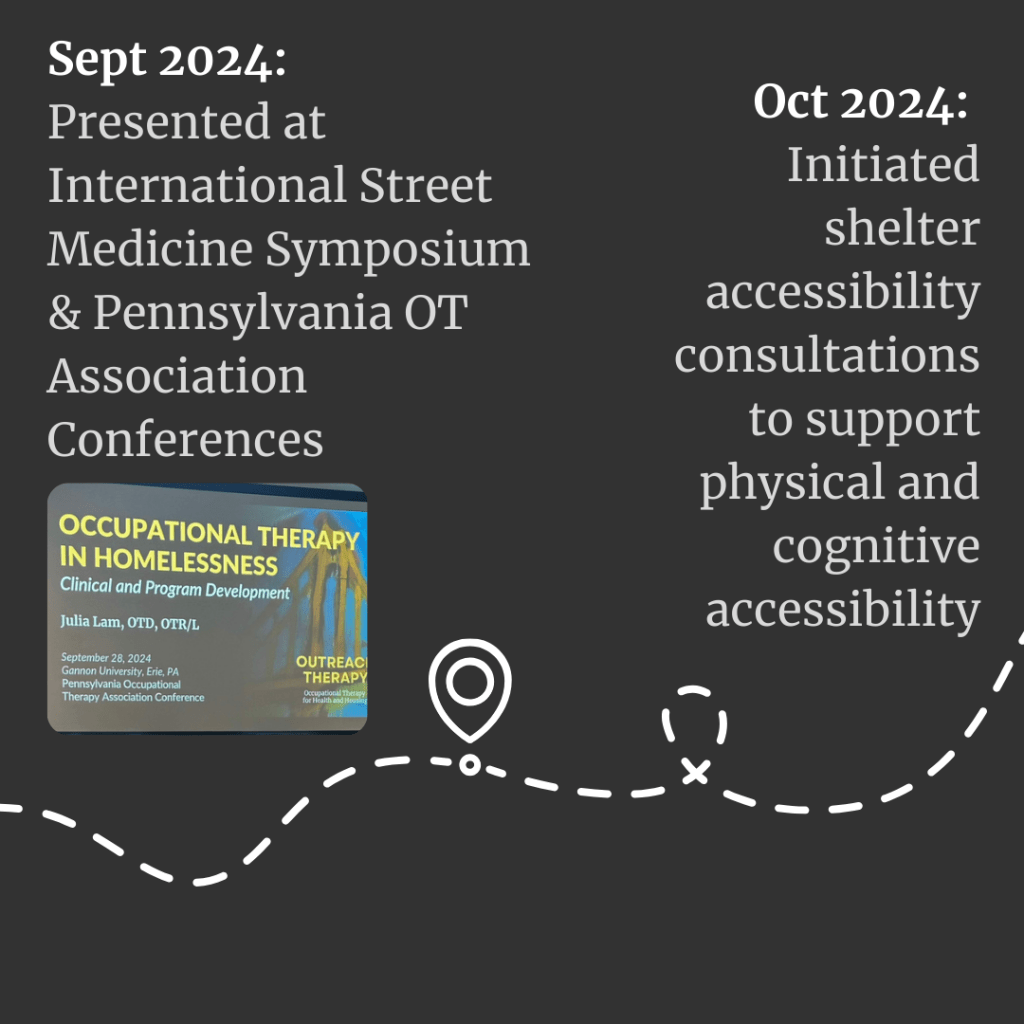 Outreach Therapy is a nonprofit organization based in Pittsburgh, PA providing occupational therapy (OT) services to people who are experiencing and exiting homelessness. We meet people where they are in the community, and continue support through long-term transition to new living environments.